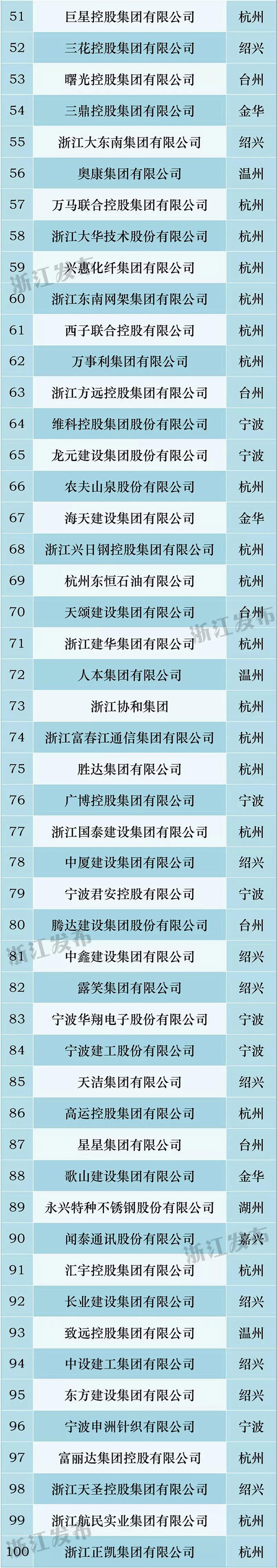 2018年浙江省民營(yíng)企業(yè)百強榜單(部分)